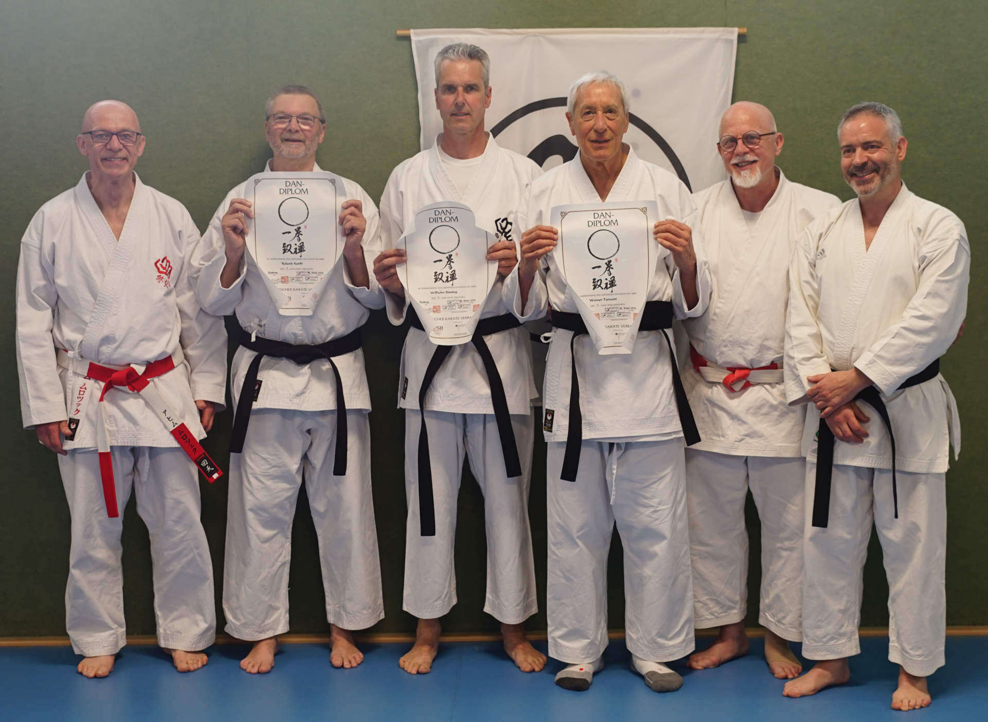Am 18.05.2024 fand nach langer Zeit wieder eine DAN-Prüfung unter der Leitung der Prüfer Ludwig Binder, 8. DAN, Achim Mrotzek, 6. DAN und José Pinto, 5. DAN statt.